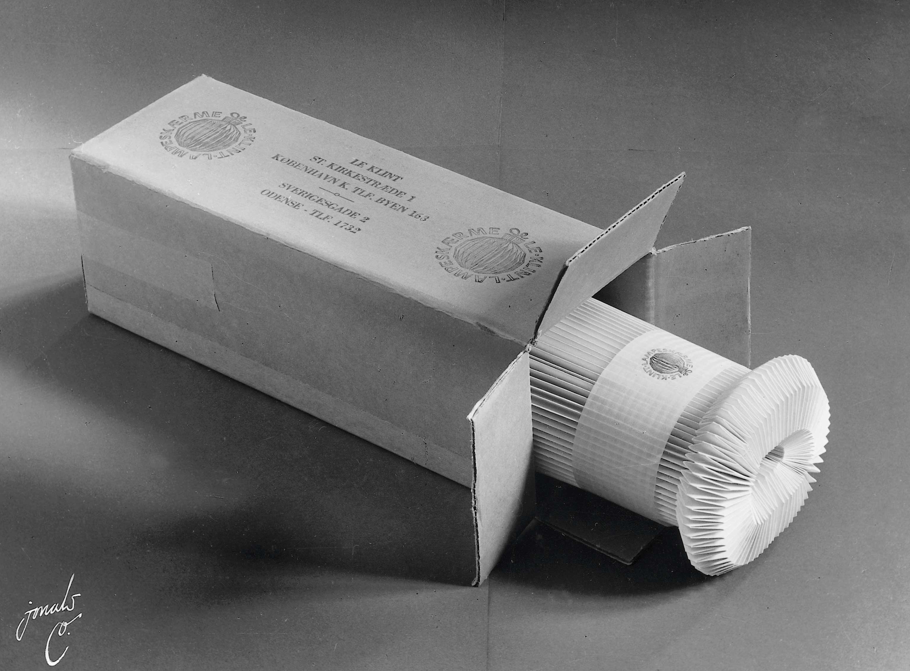 Förpackningen till Frugtlygten ritades av Kaare Klint själv och visar att han var medveten om helhetsupplevelsen av en produkt och själv ville ha kontroll över hela den visuella uttrycket.
