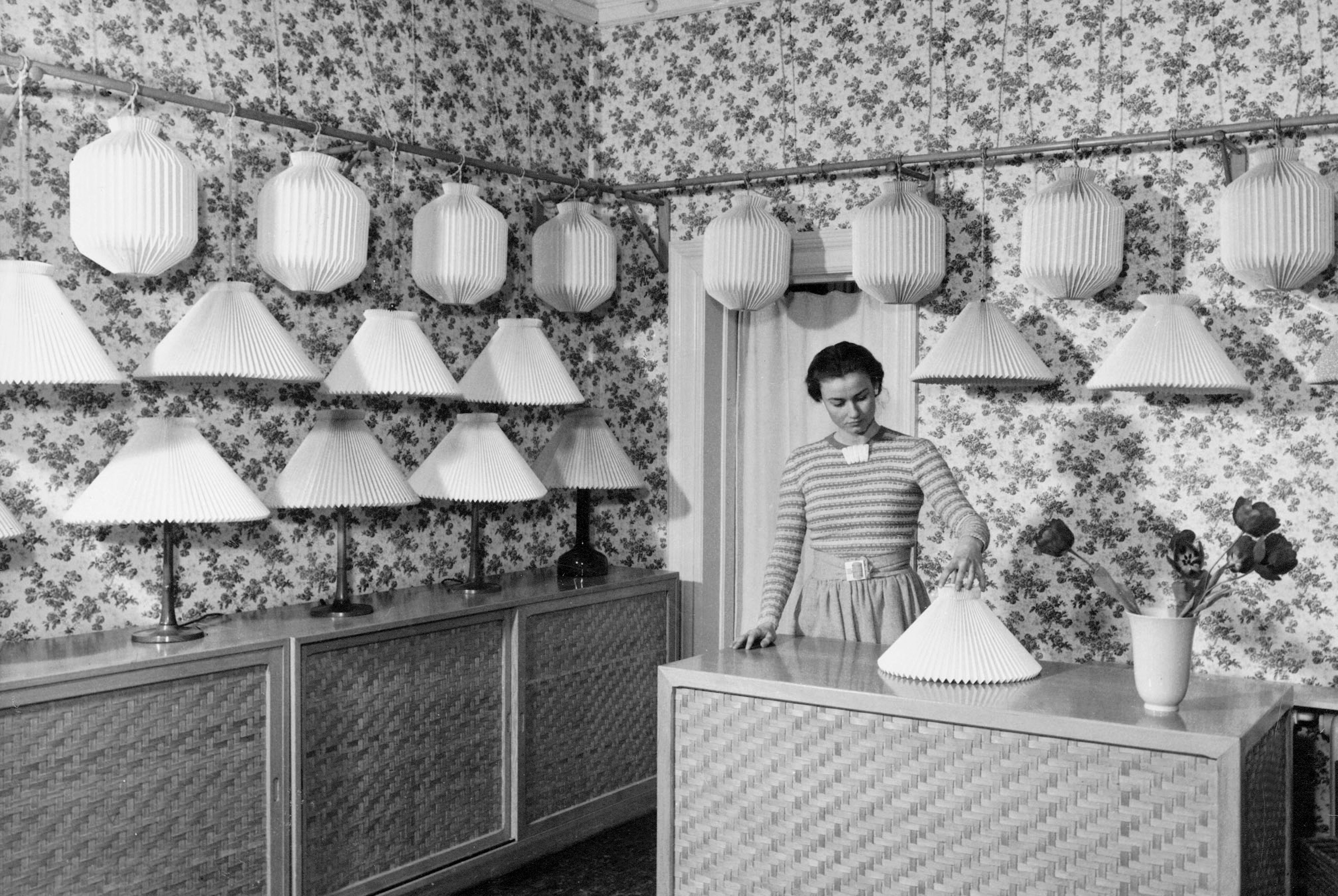 Redan 1943 öppnades en butik i huvudstaden, där man kunde visa och inte minst sälja Le Klint-lampor, som nämnts tidigare. Butiken inreddes av Kaare Klint med butiksinredning i oregonpine med luckor av flätverk. Den ursprungliga inredningen finns fortfarande kvar och förvaras på fabriken i Odense. Väggarna i butiken tapetserades med Gunnar Biilmann Petersens blommiga "Rosetapet" i en blå nyans, som gav kontrast till de enkla, vita veckade lamporna. Lampornas upphängningar designades av Mogens Koch. Det var Tage Klints dotter, Lise Le Charlotte Klint, som blev den första föreståndaren för butiken vid 23 års ålder.