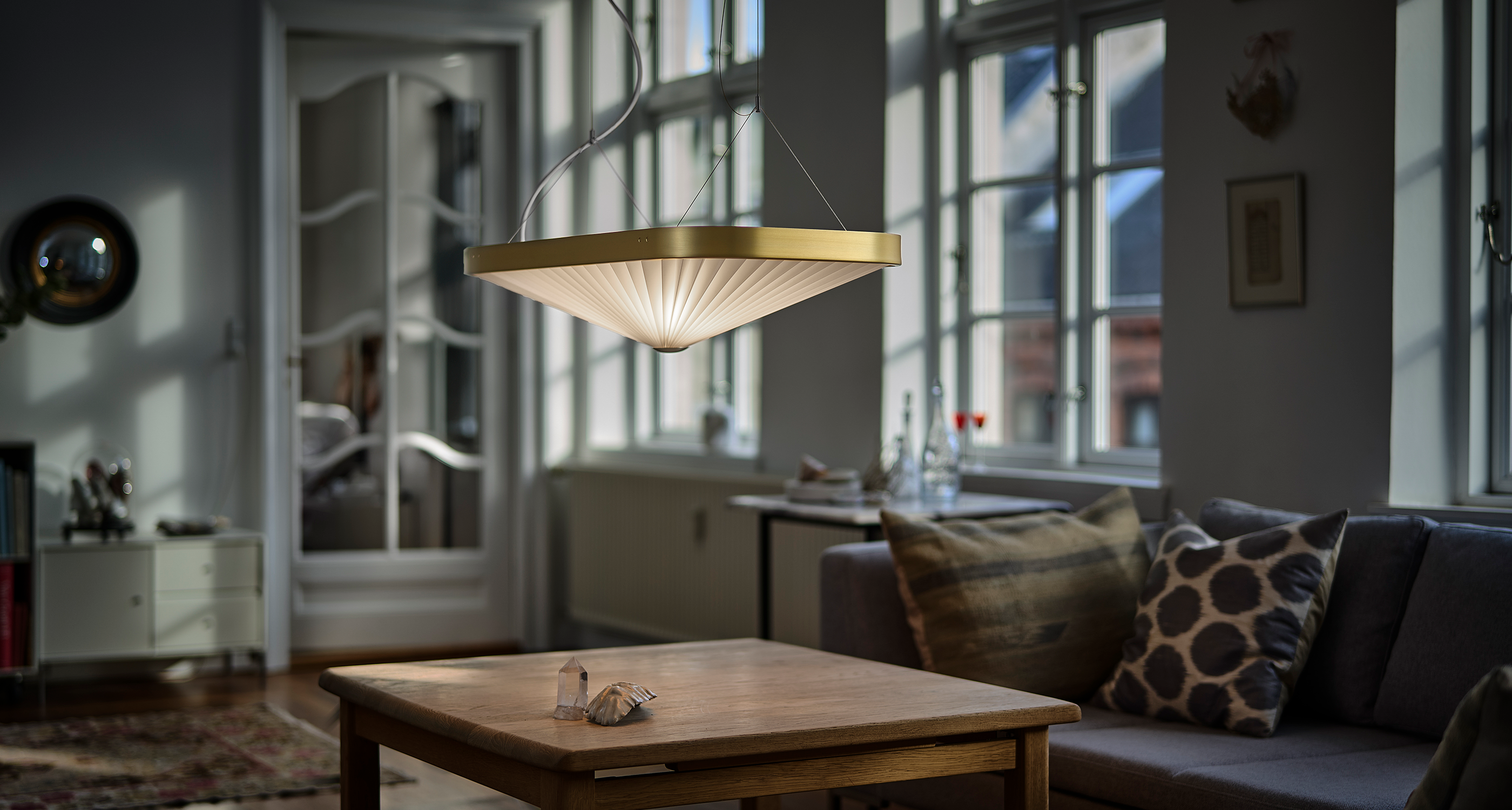 Celine, en pendellampa som ursprungligen designades av OEO Studio och tillverkades av Le Klint för Designmuseum Danmark i samband med den genomgripande renoveringen av museet för två år sedan. Som en hyllning till Le Klints historiska relation till museet kan Celine nu förbeställas på vår hemsida, i våra Brand Stores i Odense och Köpenhamn samt hos utvalda återförsäljare, med leverans från december.