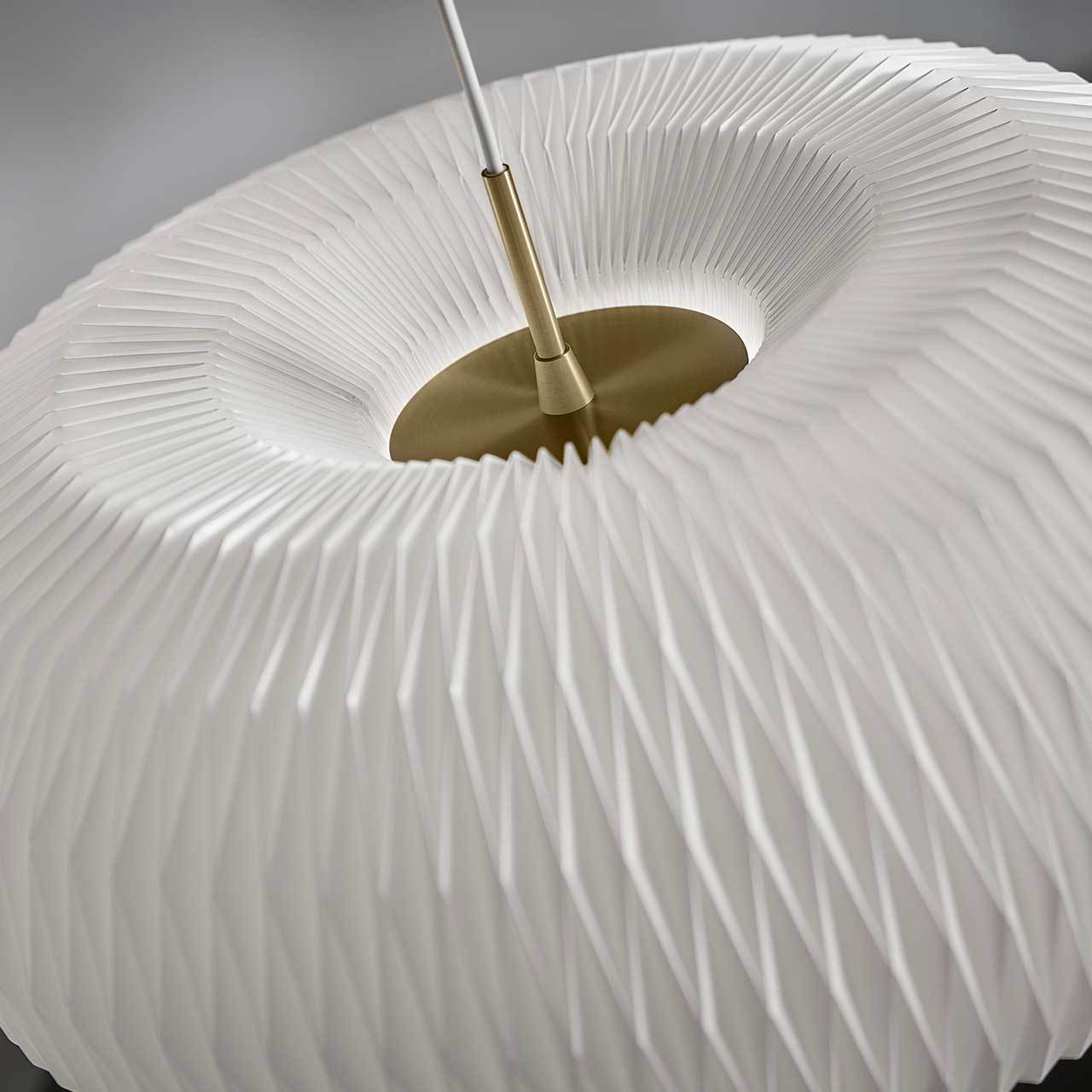 Våra handveckade plisserade lampor är mer aktuella än någonsin, och designern Lise Navne har med Donut omfamnat veckningshantverket och utvecklat lampor i tiden med en tydlig koppling till företagets långvariga DNA.