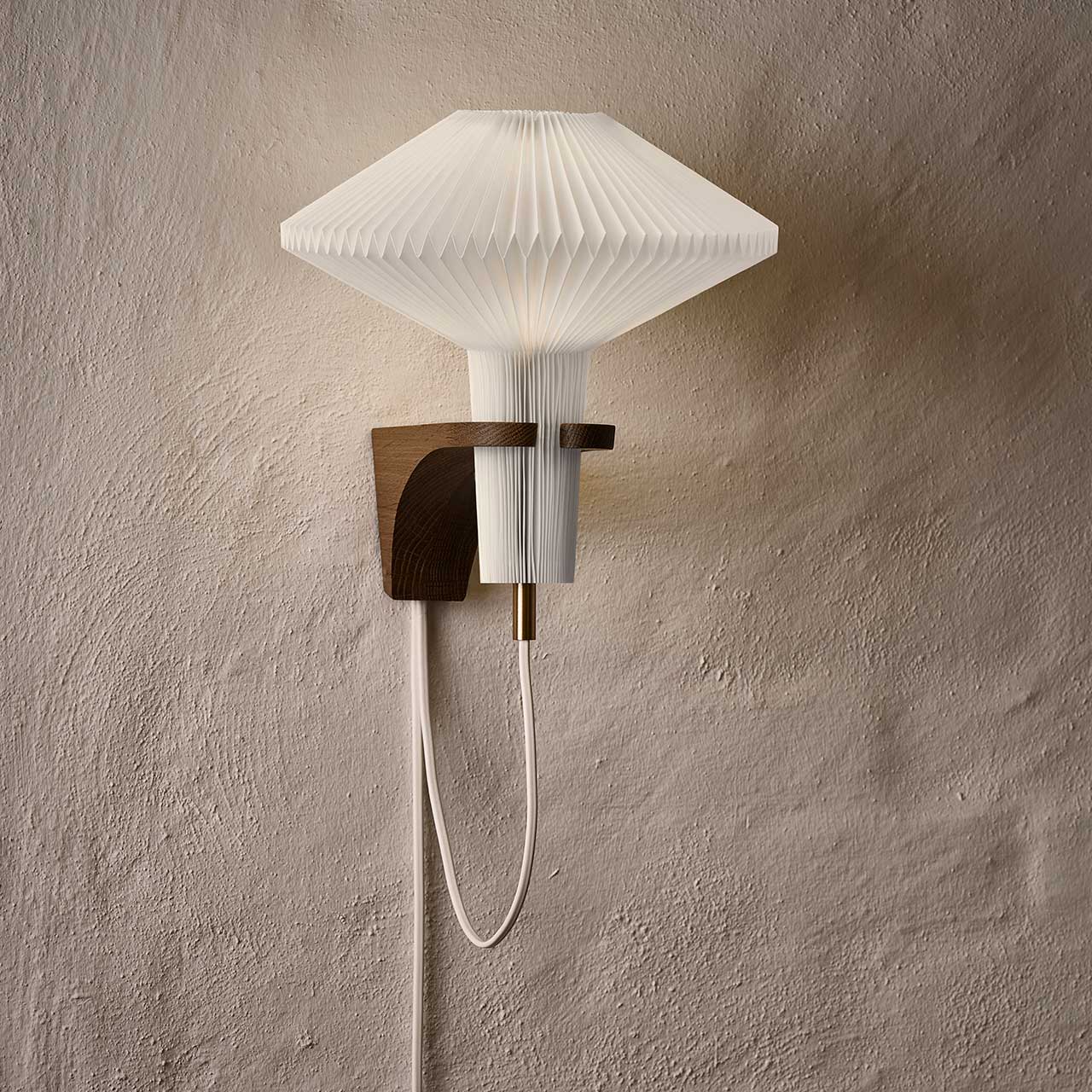 The Mushroom formgavs av Vilhelm Wohlert 1957 i samband med Nobelpristagaren och fysikern Niels Bohrs hedersbostad i Köpenhamn. Lampan relanserades 2019 och har sedan dess varit en av våra mest populära vägglampor. Det är lampans karakteristiska form med en plisserad skärm utförd för hand, som påminner om en svamp, som har bidragit till att ge lampan dess namn. Förutom rökt ek finns The Mushroom även i ljus ek.