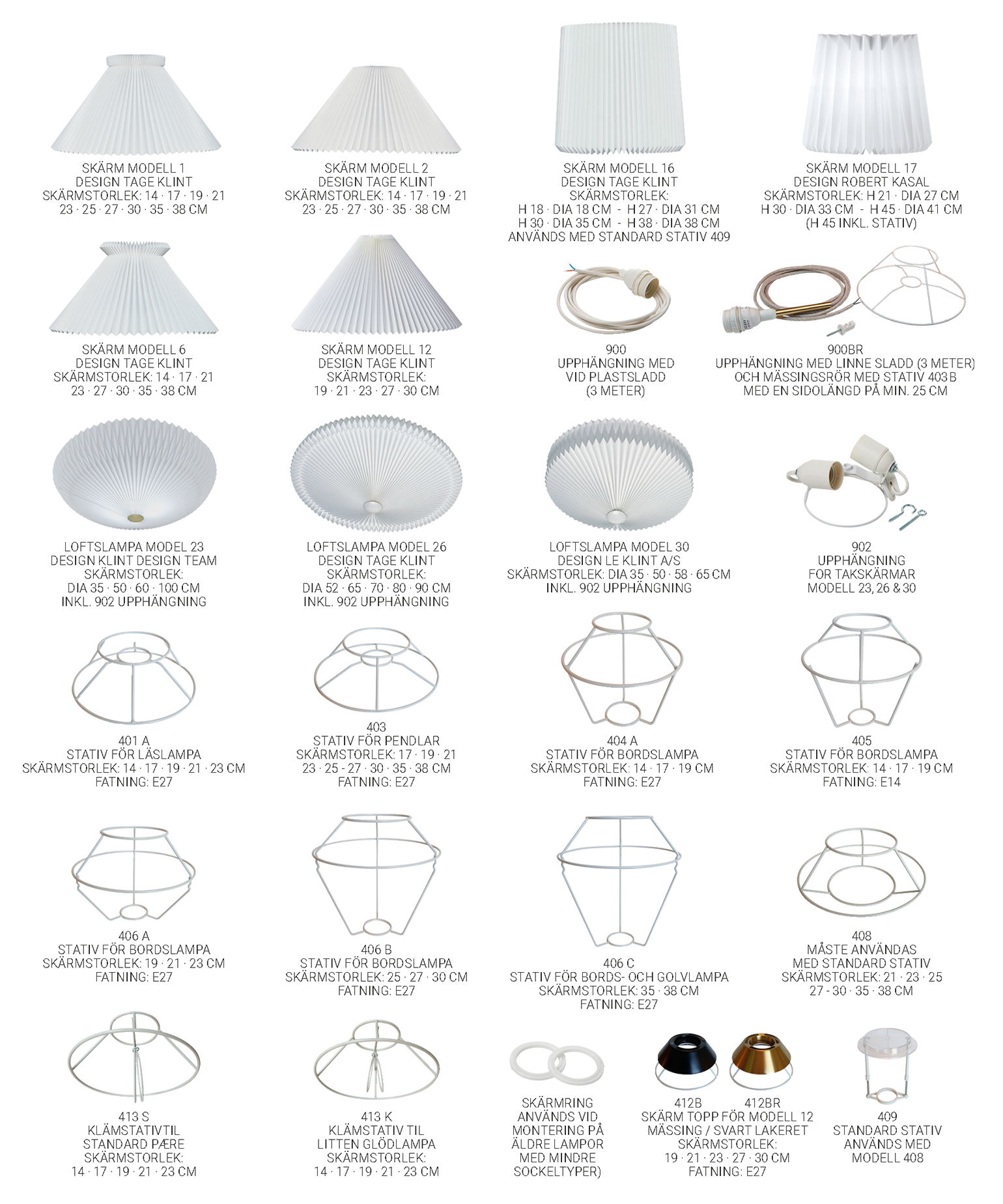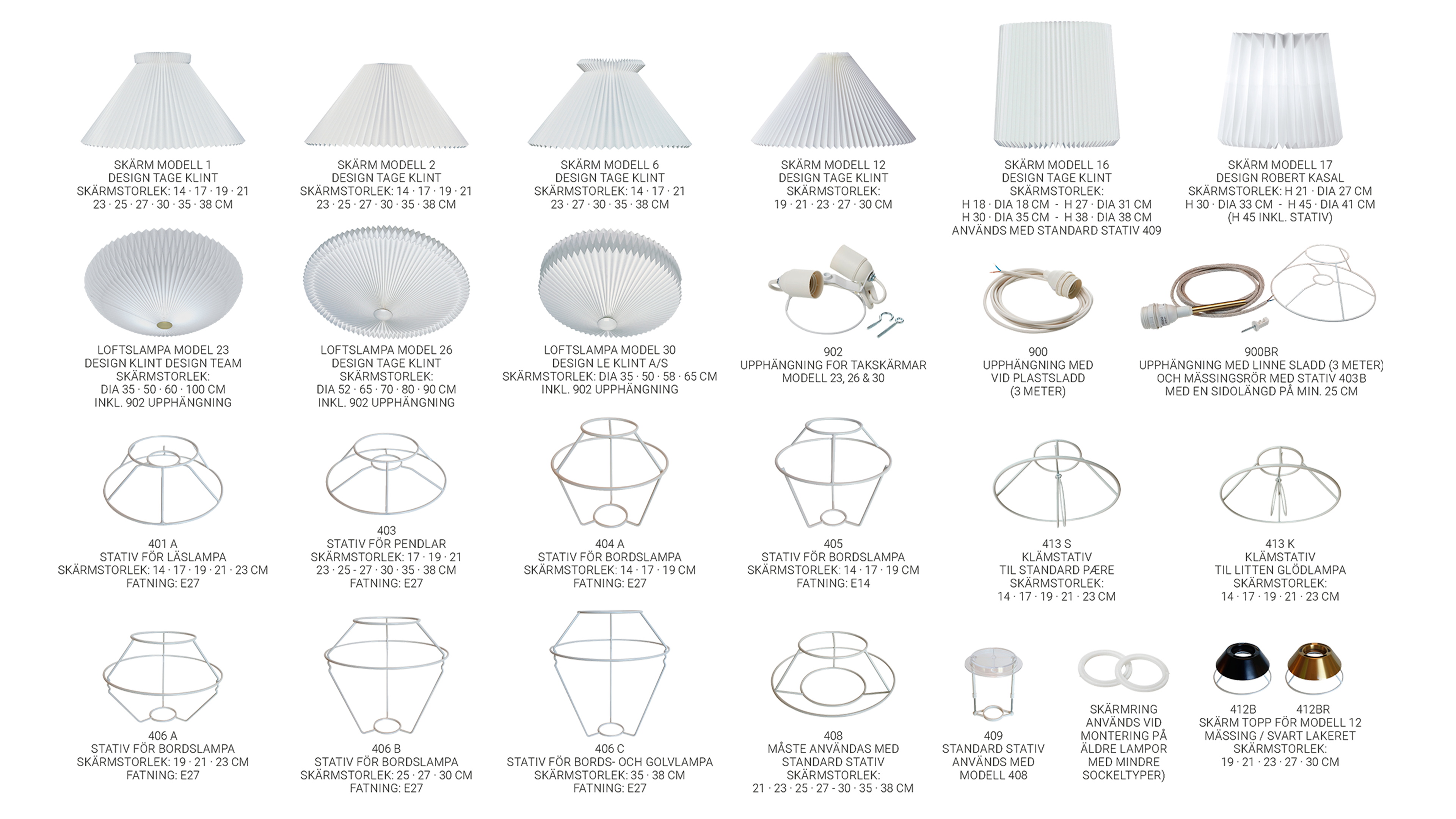 I denna översikt visas våra lösa lampglas, stativ och upphängningar