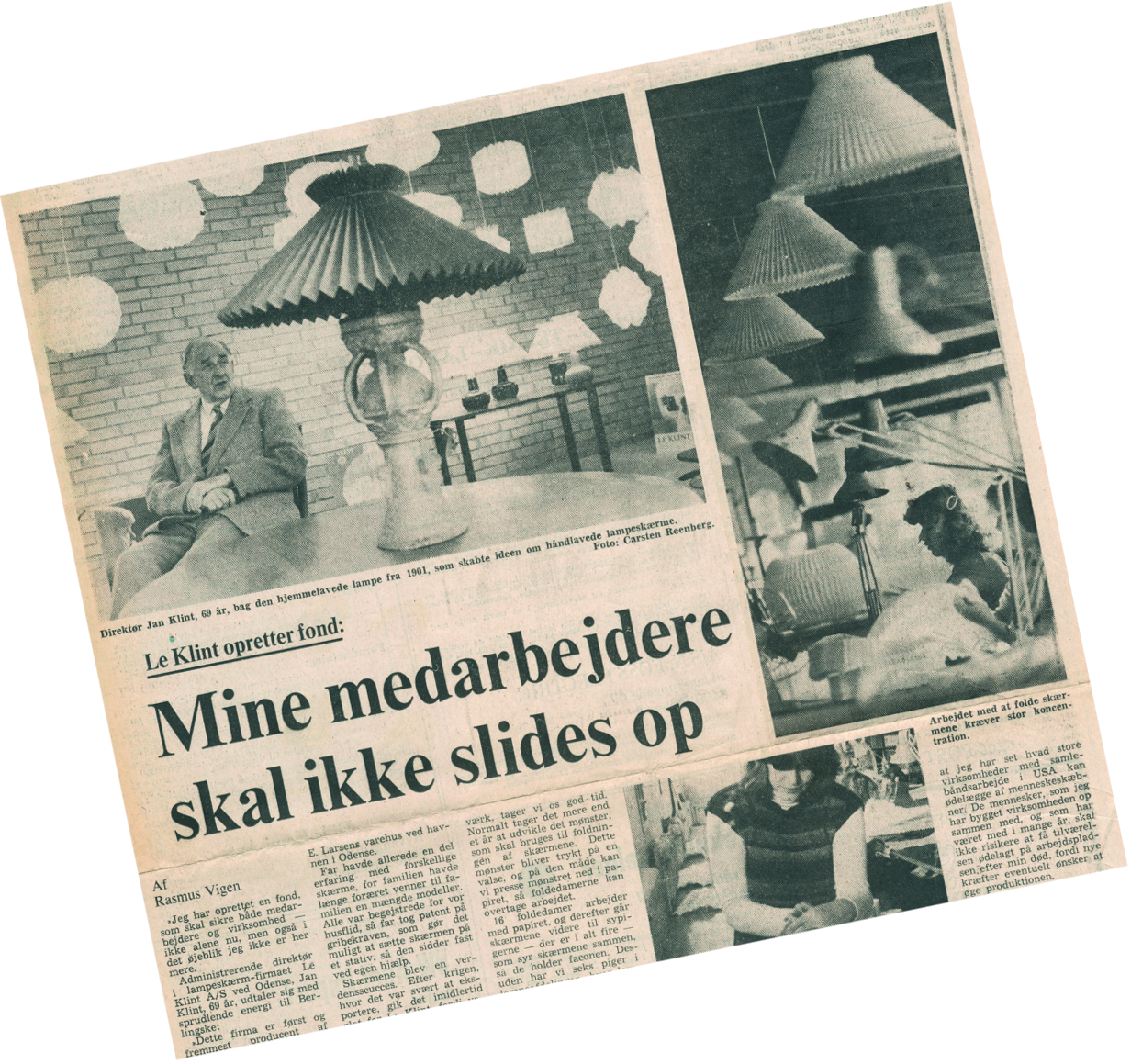 Vi är stolta över att ha upprätthållit produktionen i Odense, där vi startade 1943. Hantverket är något alldeles speciellt för oss och vi håller därför fast vid vårt beslut att Le Klint är ett "Made in Odense"-företag. Med starka rötter i det förflutna strävar vi ständigt efter att utveckla vårt varumärke för framtiden.