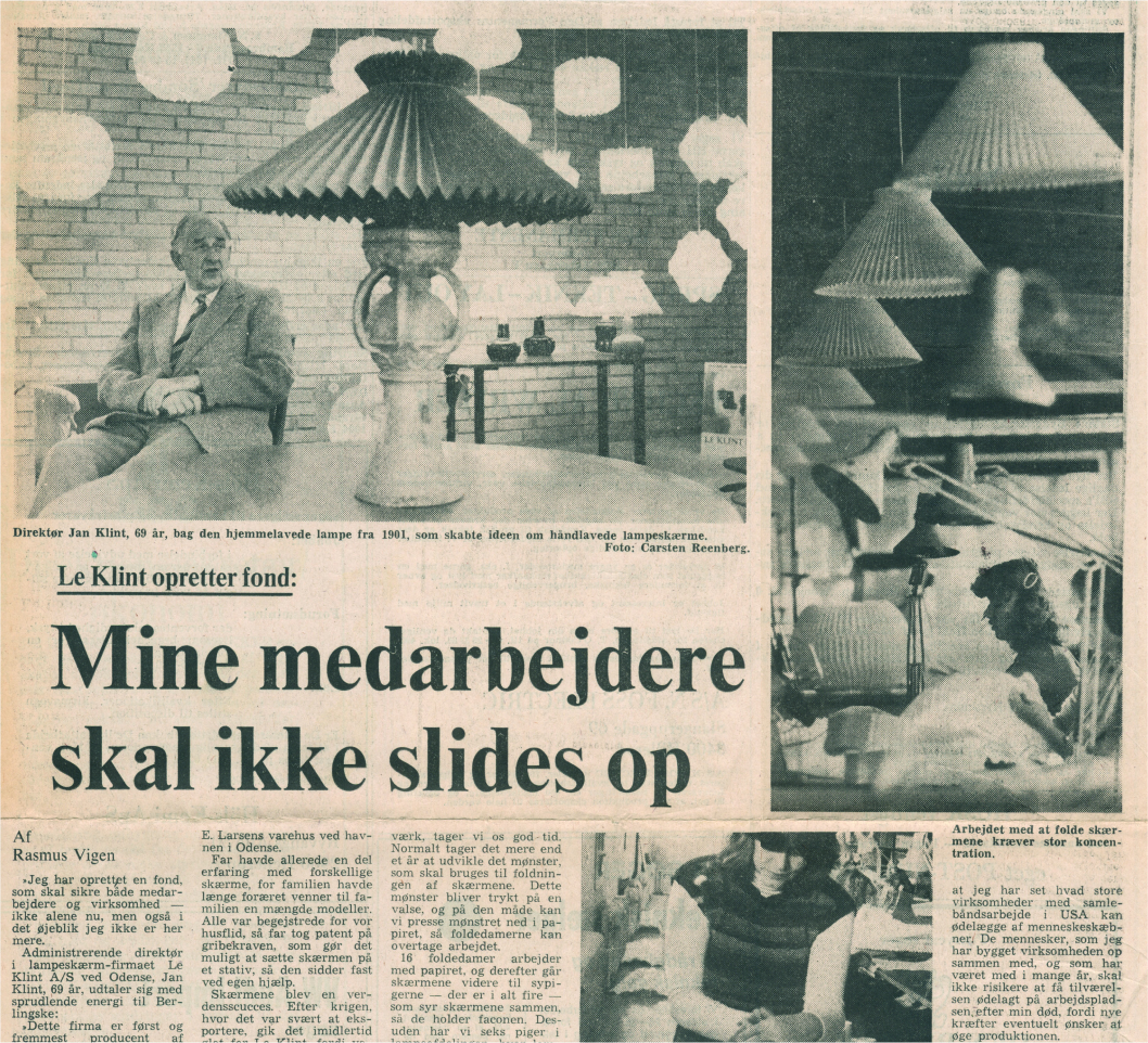 Direktör Jan Klint lämnade många viktiga fotspår på Le Klint. En av dem var att grunda Klint-Fonden 1972. Jan ville säkerställa företagets existens och personalens goda arbetsvillkor när han inte längre var där. Sedan 1972 har Klint-Fonden fokuserat på att bevara det goda danska hantverket på Le Klint med produktion i Odense. Stiftelsen är ensam ägare och delar årligen ut stipendier till unga under utbildning samt gynnar anställda i svåra situationer.